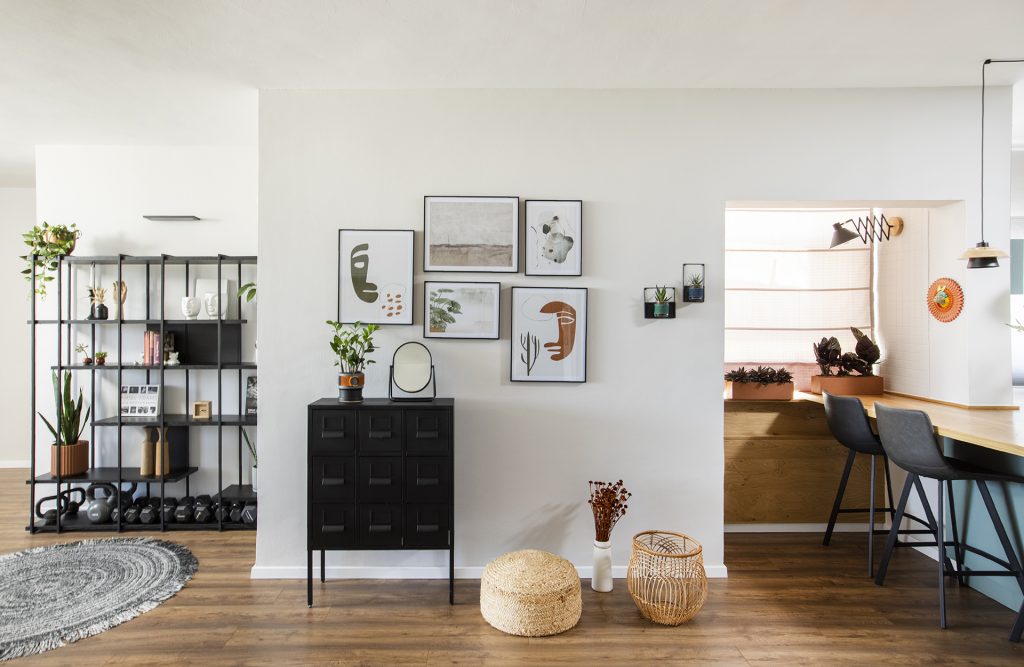 דוגמא אחת מיני רבות היא בדירה שסיימתי לעצב זה עתה בתל אביב. הלקוחה ביקשה לעבוד במרחב פתוח ולא בחדר סגור כדי לאפשר לה להיות קשובה לרחשי הבית ובמקביל גם לקיים את אימוני הספורט היומיומיים שלה באותו מרחב אתגר לא קטן בהתחשב בגודל הדירה. הפתרון- תוכננה פינת עבודה בנישה במטבח שמתחברת למשטח העבודה באי, כך ניתן לעבוד ובו זמנית להיות קשובים למתרחש ואת אימוני הספורט באותו המרחב לבקשתה הסבנו את פינת האוכל שמראש הוגדרה כלא מנוצלת לצורך זה. אביזרי האימונים, מזרנים ומשקולות אוחסנו בקירוב בארון שתוכנן בהתאמה אישית.